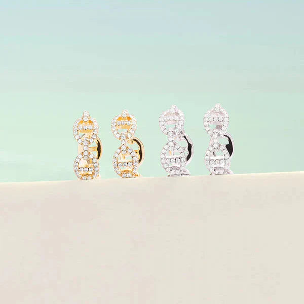 La Boucle d’oreille Isla Marina présente une structure composée de deux formes circulaires reliées, créant une silhouette harmonieuse. Les détails incrustés ajoutent un relief équilibré, tandis que l’or blanc offre une finition nette qui met en valeur l’ensemble. Son design travaillé apporte une touche graphique tout en restant parfaitement ordonné.