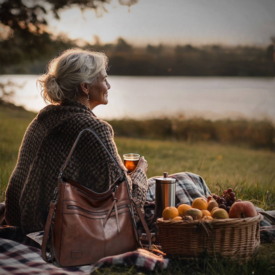 - Cuir Véritable Premium : Le Sac Magda est fabriqué à partir de cuir véritable de haute qualité, garantissant un accessoire robuste et luxueux qui résiste à une utilisation quotidienne. Le cuir est résistant aux rayures, aux taches et à l'eau, maintenant son élégance au fil du temps.