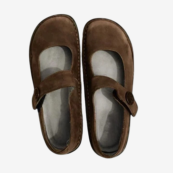 Adoptez un style intemporel et un confort moderne avec les chaussures Violetta™ Mary Jane. Ces charmantes chaussures plates arborent une silhouette classique avec un bout arrondi et une bride simple mais élégante, leur conférant une touche rétro et nostalgique. Leur semelle robuste offre un soutien subtil et un confort optimal tout au long de la journée, tandis que leur finition lisse et polie en fait une pièce polyvalente en toute occasion. Pour aller au bureau ou pour une sortie décontractée, les chaussures Violetta™ sont idéales pour ajouter une touche de charme vintage à votre look.